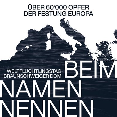 "Beim Namen nennen - über 60.000 Opfer der Festung Europa" Seit vielen Jahren findet in verschiedenen Städten der Schweiz und Deutschlands die Aktion "Beim Namen nennen" zum Internationalen Weltflüchtlingstag statt. Im vierten Jahr beteiligen sich die Kirchengemeinden St. Blasius und St. Magni in Braunschweig daran.