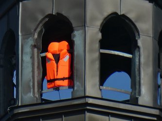 Mit den orangen Rettungswesten an den Kirchen sollte ein sichtbares Zeichen gegen das Sterben im Mittelmeer und der Solidarität mit Menschen auf der Flucht und in Seenot gesetzt werden.