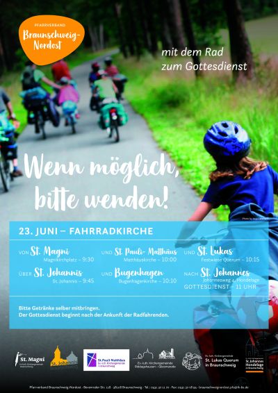 Am ersten Sonntag der Sommerferien, 23. Juni, lädt die Braunschweiger Magni-Kirchengemeinde zum Start ihrer Sommerkirche wieder zu einer gottesdienstlichen Landpartie ein. Unter dem Motto „Magni zu Rad“ geht es dann zum Gottesdienst in den Pfarrgarten an der Hondelager St. Johannes-Kirche. Treffpunkt für interessierte Radlerinnen und Radler ist um 9:30 Uhr der Magni-Kirchplatz. An der St. Johannis Kirche (ca. 9:45), der Matthäuskirche (ca. 10 Uhr), der Bugenhagen-Kirche (ca. 10:10 Uhr) und der Querumer Festwiese (ca. 10:15 Uhr) stoßen die Kirchengemeinden St. Johannis, Bugenhagen und St. Lukas hinzu. Der Gottesdienst in Hondelage beginnt gegen 11 Uhr und endet mit einer Einladung zu Wasser und Kaffee unter der wunderschönen Kircheneiche. Herzlich Willkommen zum sommerlichen Mitradeln!