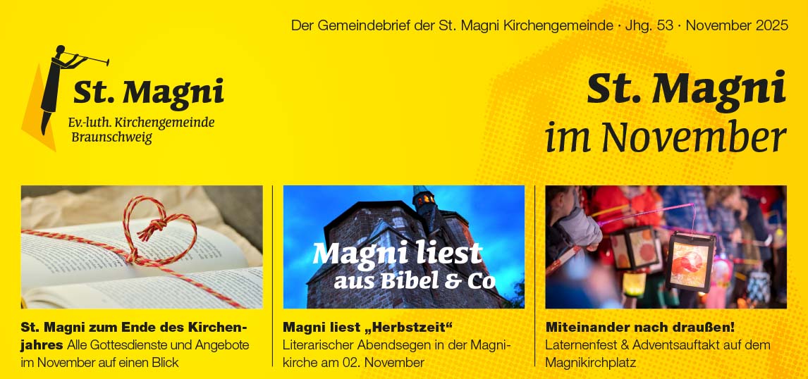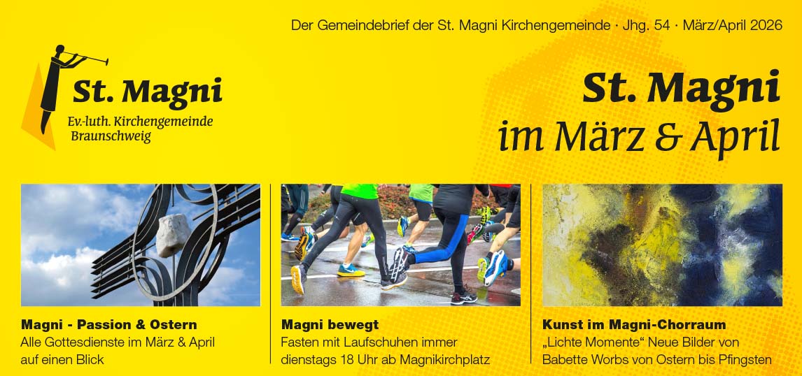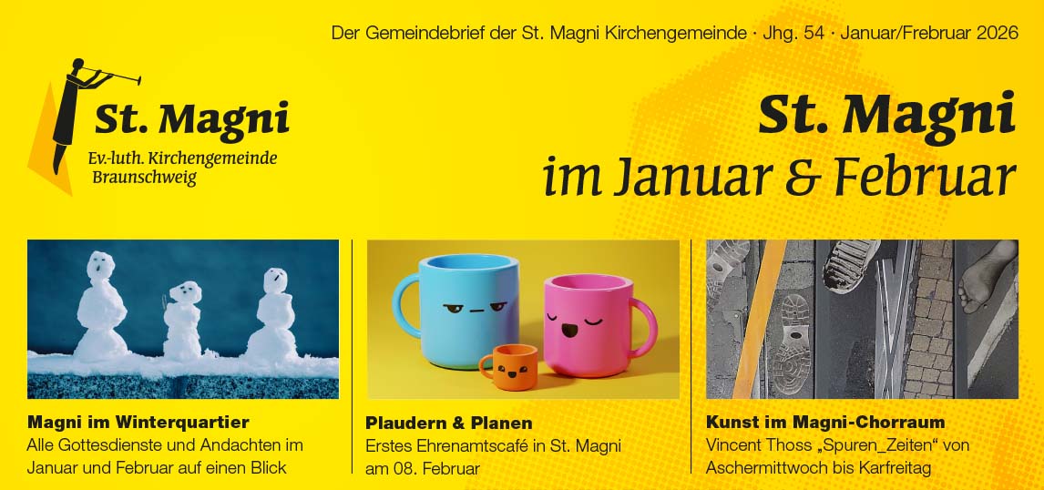 Der MagniBrief erscheint regelmäßig für ein oder zwei Monate. Er liegt in der Magni-Kirche und im Braunschweiger Dom öffentlich zur Mitnahme aus.