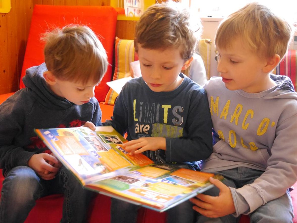 Gesprächskreise, Bilderbuchbetrachtungen und individuelle Unterhaltungen regen die Kinder immer wieder an. So lernen sie spielerisch sich auszudrücken und ihre sprachliche Kompetenz zu erhöhen.