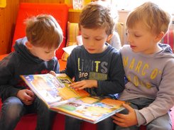 Rhythmische Übungen und Musik schärfen das Gefühl für Sprache, und die umfangreiche Kindergartenbücherei (Bestand weit über 1000 Bücher) verknüpft Sprache und Bilder. Das Interesse der Kinder an Zahlen und Buchstaben unterstützen wir ausdrücklich.